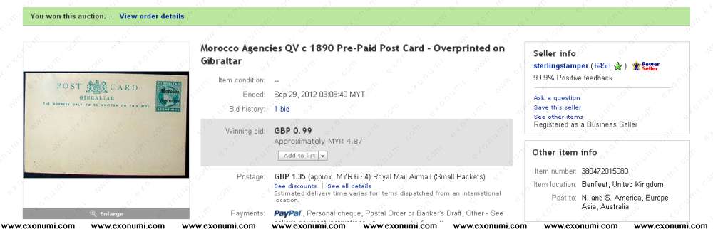 Gibraltar Postal Card 5c Over-printed Morocco Agencies (1898)