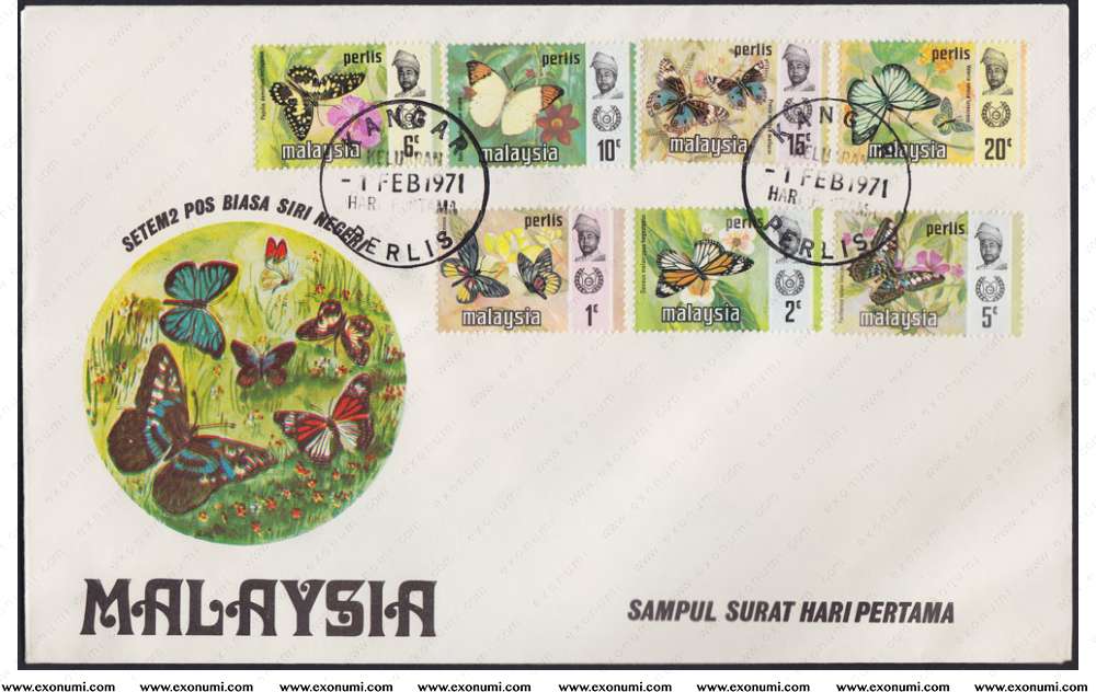 Malaysia : Perlis - State Definitive Series : Butterflies (1971) FDC