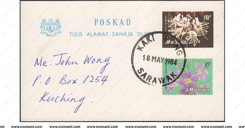 Malaysia - Postcard 10¢ + Uprated 5¢ (Used in 1984)