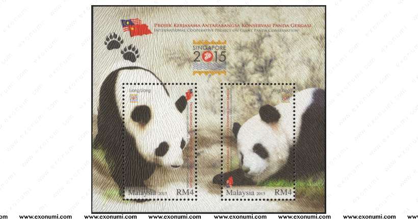 Malaysia - Singapore 2015 World Stamp Exhibition : Overprinted on International Cooperative Project On Giant Panda (2015)